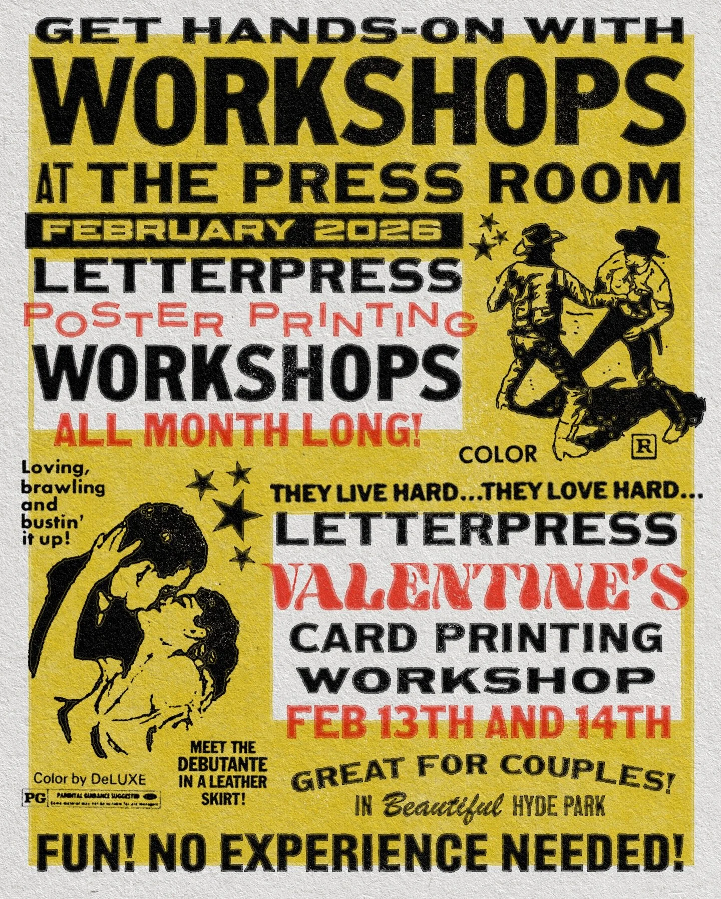 Step back in time and immerse yourself in the world of classic cinema with our exclusive, hands-on letterpress workshops where you’ll design and print your own unique lobby poster, inspired by the golden age of Hollywood. In this 3-hour workshop, you’ll have the chance to work with authentic vintage letterpress cuts from a wide range of movie genres, from spine-chilling horror to out-of-this-world sci-fi, classic westerns, and glamorous Hollywood films. Whether you're a design enthusiast or a cinephile, this workshop is your chance to create a piece of film history, one lobby poster at a time.